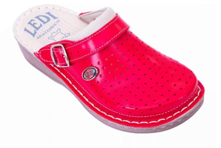 Természetes bőrből készült gyógyklumpa, csatos pánttal, amelynek köszönhetően jól illeszkedik minden lábfejformához.